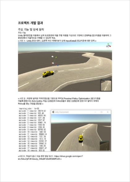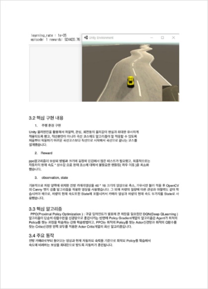 Unity로 구현한 자율주행 시뮬레이터 입니다. 우측 하단에 보이는 영상이 실제로 Agent가 입력으로 받는 영상이고, 이 영상을 State로 Agent는 Action을 내리게 됩니다. 노트북 링크 : https://drive.google.com/